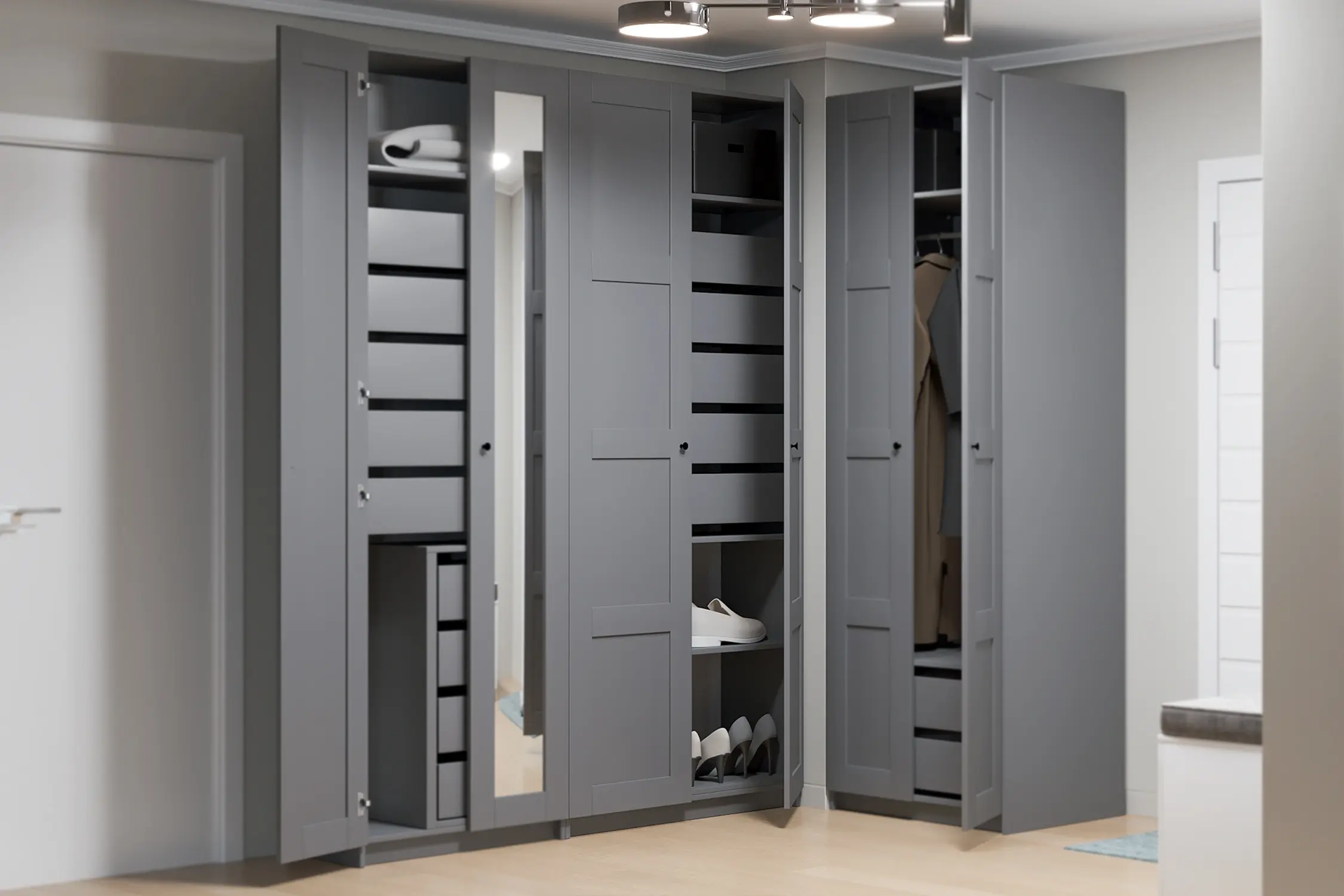 данный фасад собран из брусков с 4я заполнениями, это визуально вписывается в стиль минимализма и очень стильно выглядит, ширина 500мм(можно применить на корпуса 500 и 1000 мм), цвет на выбор БЕЛЫЙ/ТЕМНО БИРЮЗОВЫЙ/СЕРЫЙ/ЯСЕНЬ, петли необходимо приобретать отдельно.